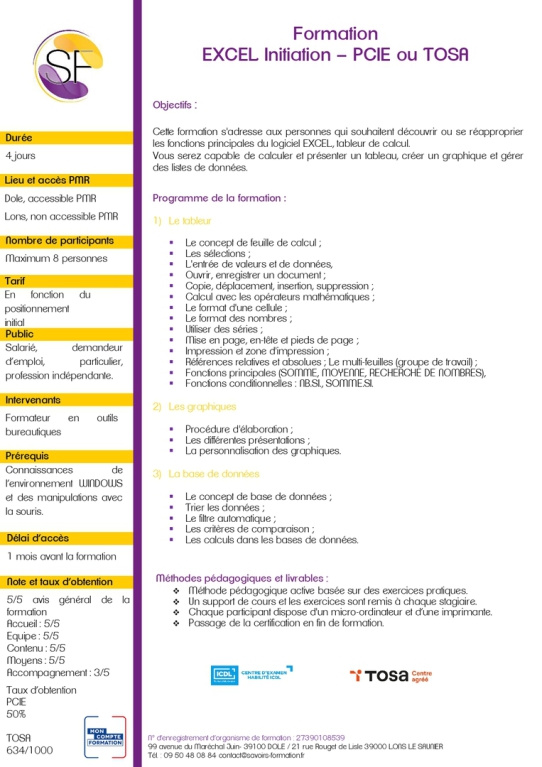 Cette formation s'adresse aux personnes qui souhaitent découvrir ou se réapproprier les fonctions principales du logiciel EXCEL, tableur de calcul.