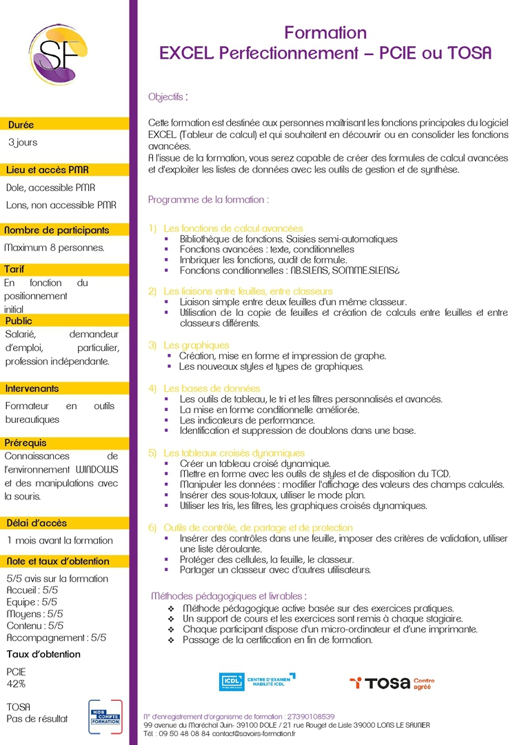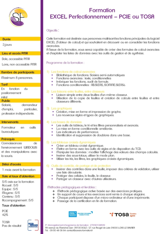 Cette formation est destinée aux personnes maîtrisant les fonctions principales du logiciel EXCEL (Tableur de calcul) et qui souhaitent en découvrir ou en consolider les fonctions avancées.