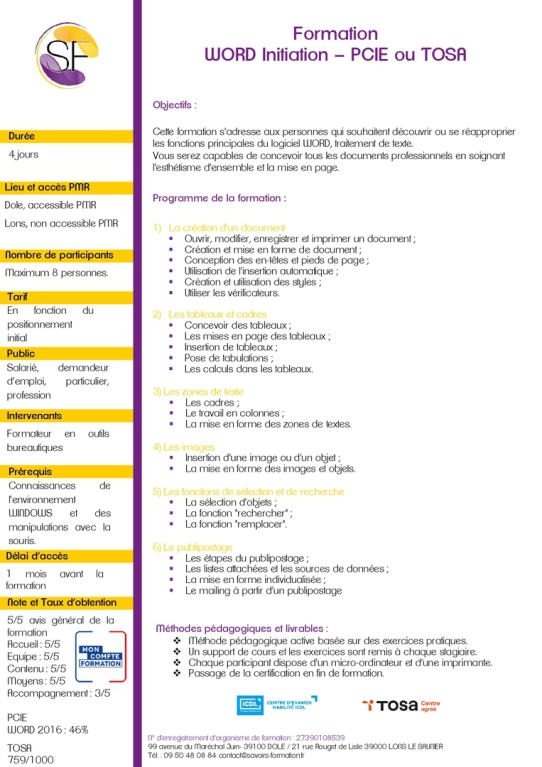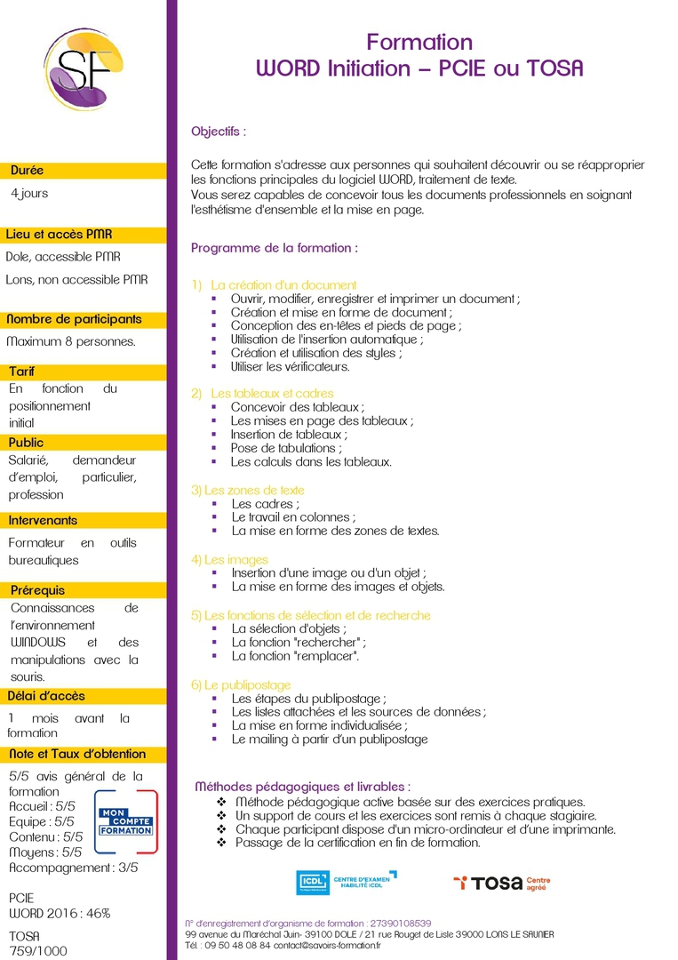 Découvrir ou se réapproprier les fonctions principales du logiciel WORD, traitement de texte.