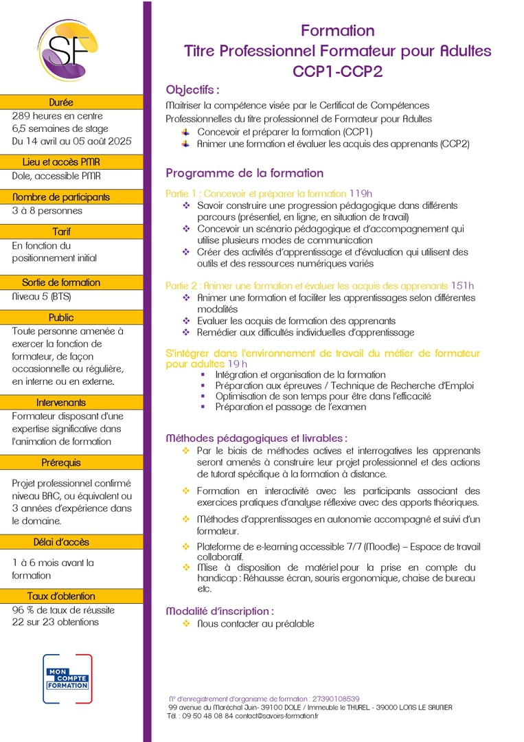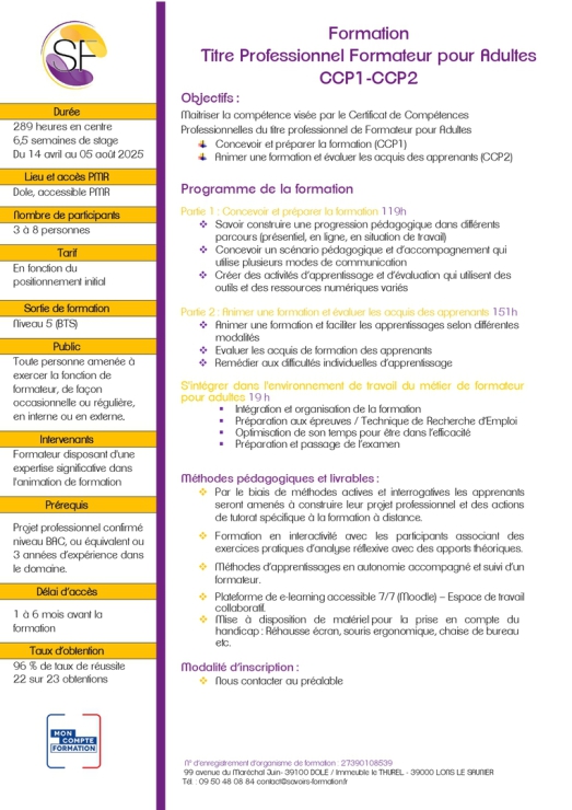 Vous souhaitez des informations n'hésitez pas à nous contacter par téléphone au 09 50 48 08 84 ou par mail contact@savoirs-formation.fr